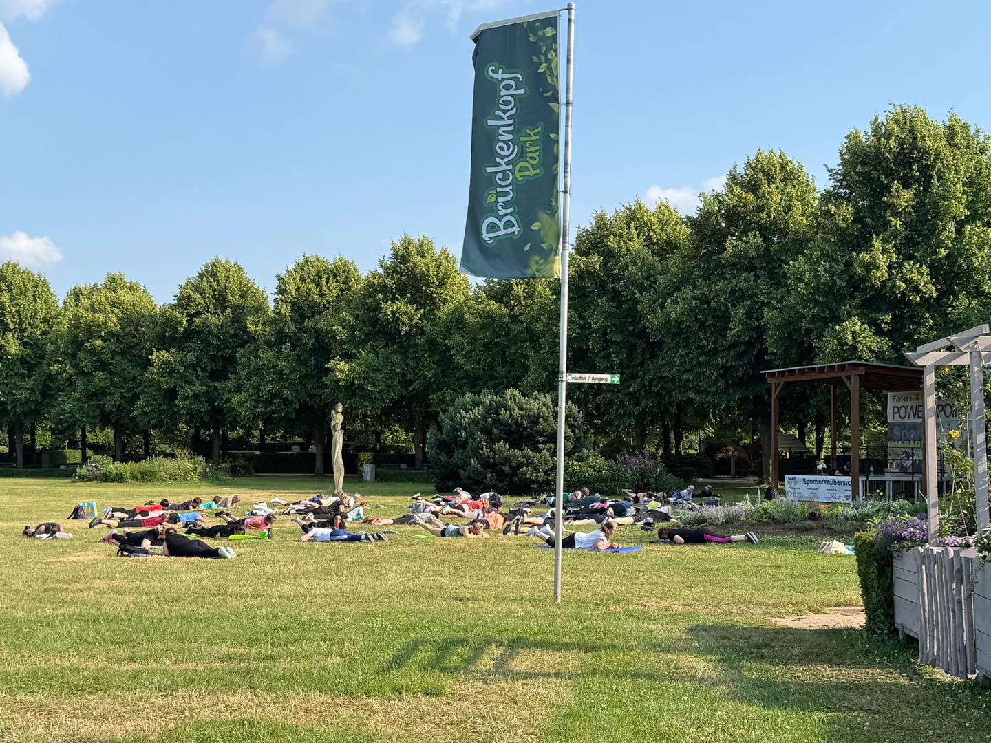 Interesse? Dann kommt einfach in Sportkleidung und Gymnastikmatte zum Haupteingang des Brückenkopf-Park.