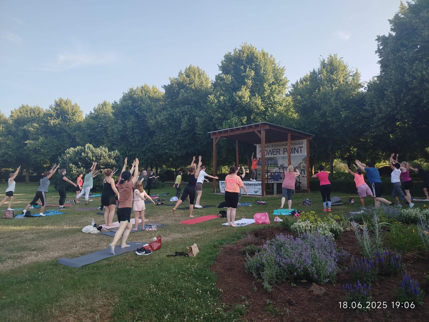 Bei angenehmen Wetter haben auch heute 40 Teilnehmer beim Yoga Kurs teilgenommen. 🧘🏼♂️🧘🏼♀️