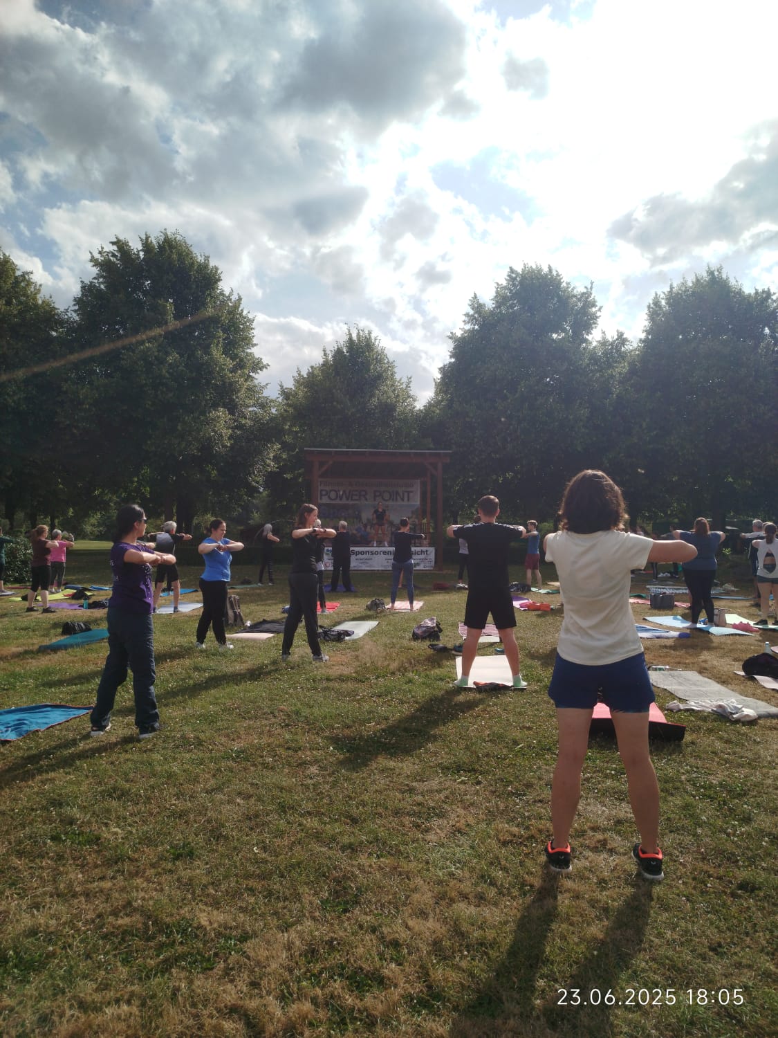 Trotz der anspruchsvollen Temperaturen durften wir 88 Teilnehmer zum Yogakurs begrüßen.